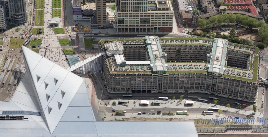 De kennisdag vindt plaats op het dak van het Groot Handelsgebouw, te bereiken via De Trap van MVRDV. Foto: Ossip van Duivenbode