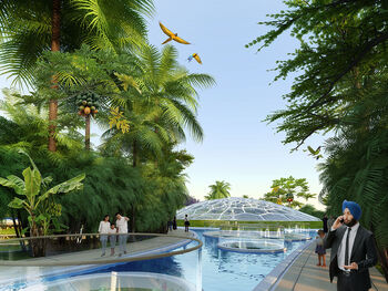 De diverse ruimtes zijn verbonden door groene wandelbruggen, die tevens dienst doen als ontmoetingsplekken. De beplanting op de bruggen wordt geïrrigeerd door regenwater en gefilterd afvalwater van de bewoners. Door zowel kantoren als woningen in de torens te situeren, wordt sociaal contact gestimuleerd via deze bruggen.