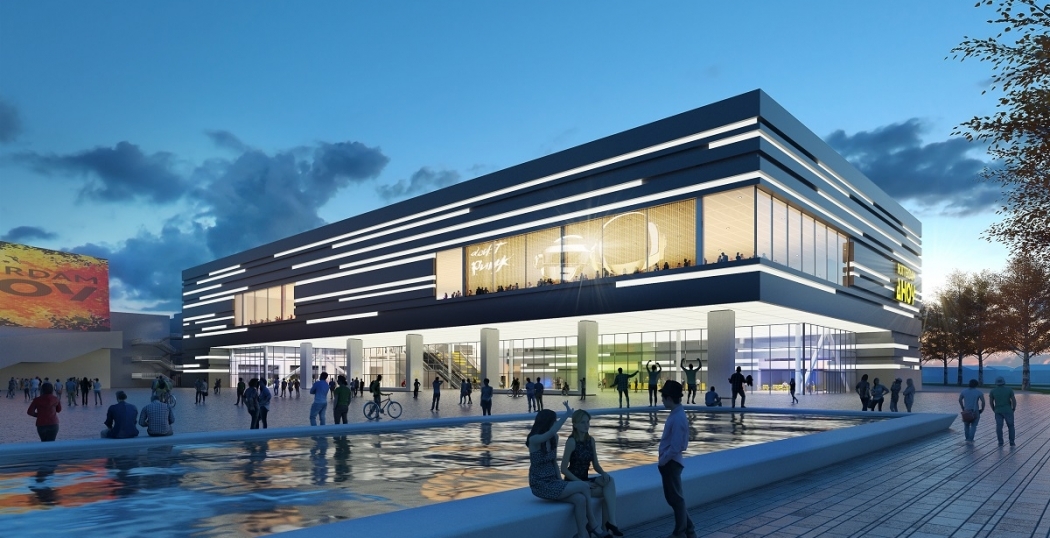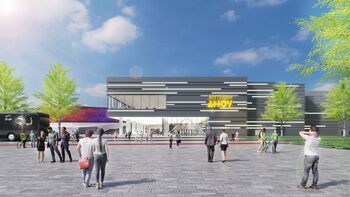 Impressie van het nieuwe ICC van Ahoy aan de westkant van het voorplein van de Beurshallen.