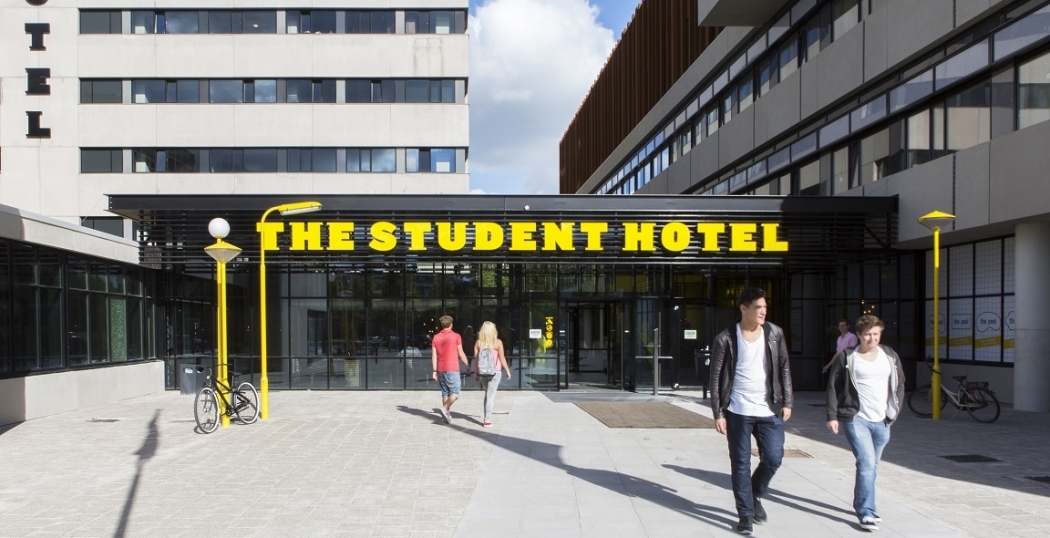 The Student Hotel in Amsterdam. Op het dak wordt een zonneweide aangelegd.
