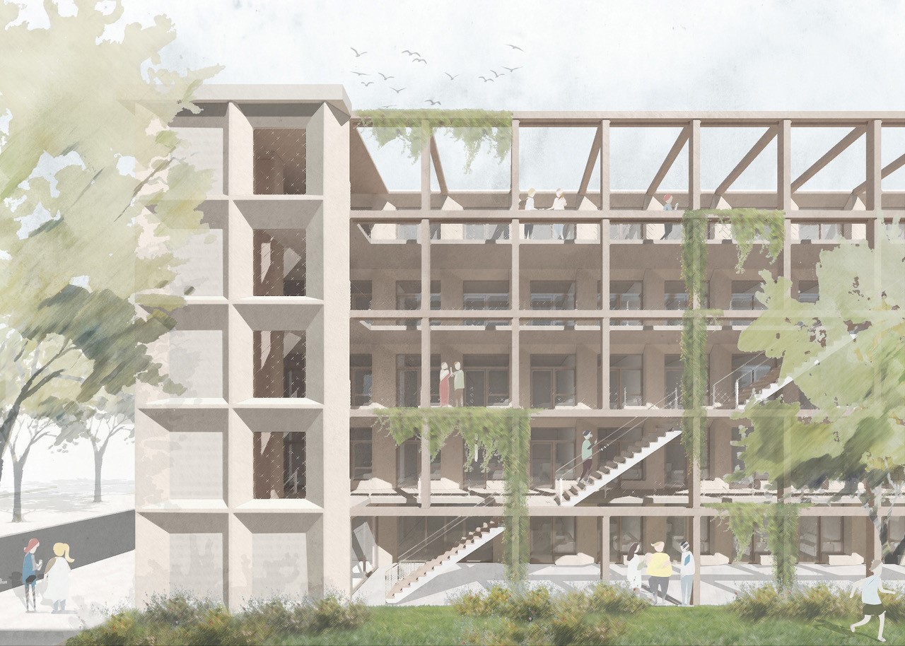 Stadgenoot heeft projectontwikkelaar M.J. De Nijs in de arm genomen om gezamenlijk de ontwikkeling op zich te nemen. Architectenbureau Heren 5 tekende voor het vijf verdiepingen tellende ontwerp, waarbij circulariteit, licht en ruimte centraal staan. Het in houten hoogbouw gespecialiseerde Hamlet Design+Build Technology is verantwoordelijk voor het constructieve ontwerp van het houten casco en neemt tevens de realisatie voor haar rekening.