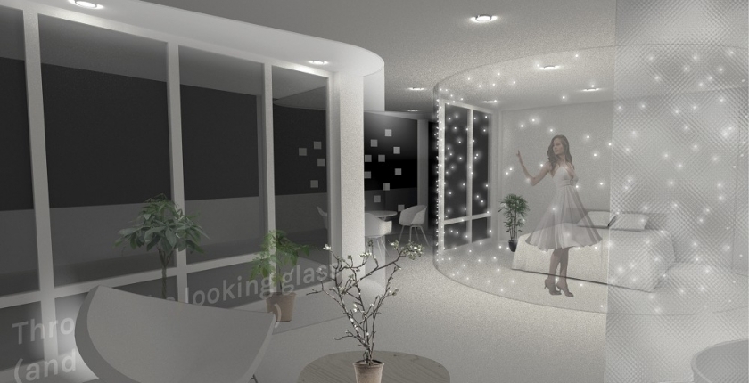 Het ontwerp 'Through the Looking Glass' van architect Jasper Spigt is een enkele glazen wand door een hotelkamer in het Van der Valk-hotel in Tiel. Door dezelfde wand op zijn route uit te voeren in steeds ander glas – doorzichtig, mat, energieopwekkend, met verlichting of kunst erin, etc. – is deze in staat steeds een andere functie te vervullen.