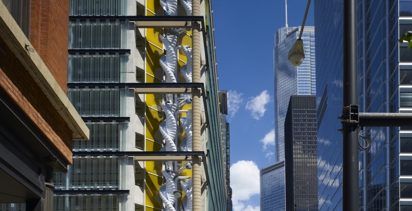 Verticale windturbines op de hoek van Greenway parkeergarage in Chicago.