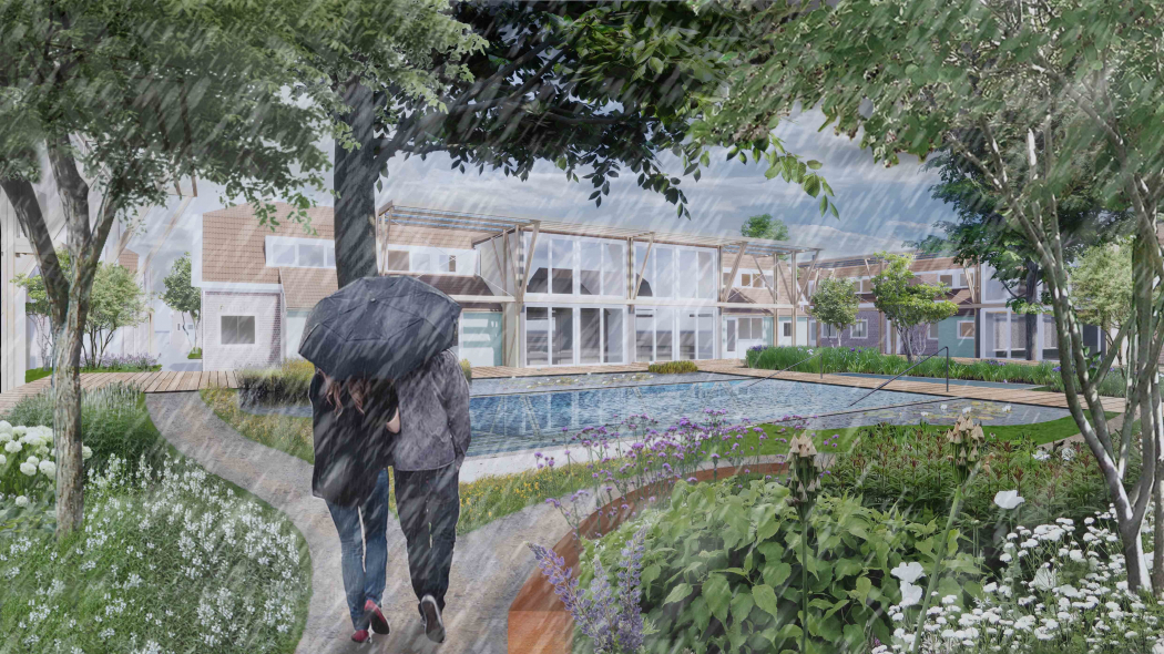 In de publicatie worden vijf testlocaties in Amsterdam, Rotterdam en Zwolle belicht: plekken waar klimaatstresstests wateroverlast voorspellen en waar corporatiewoningen staan die aan een opknapbeurt toe zijn. Deze combinatie was voor de deelnemende ontwerpteams, waar naast architecten ook landschapsarchitecten, waterbouwkundig ingenieurs en experts op gebied van volkshuisvesting en duurzaamheid zitting in hadden, het vertrekpunt. De inspirerende ontwerpvisies die zij hebben uitgewerkt, vormen de kern van het boek. Naast visualisaties worden er ook stappenplannen gepresenteerd, die corporaties of gemeenten handvatten kunnen bieden voor implementatie.