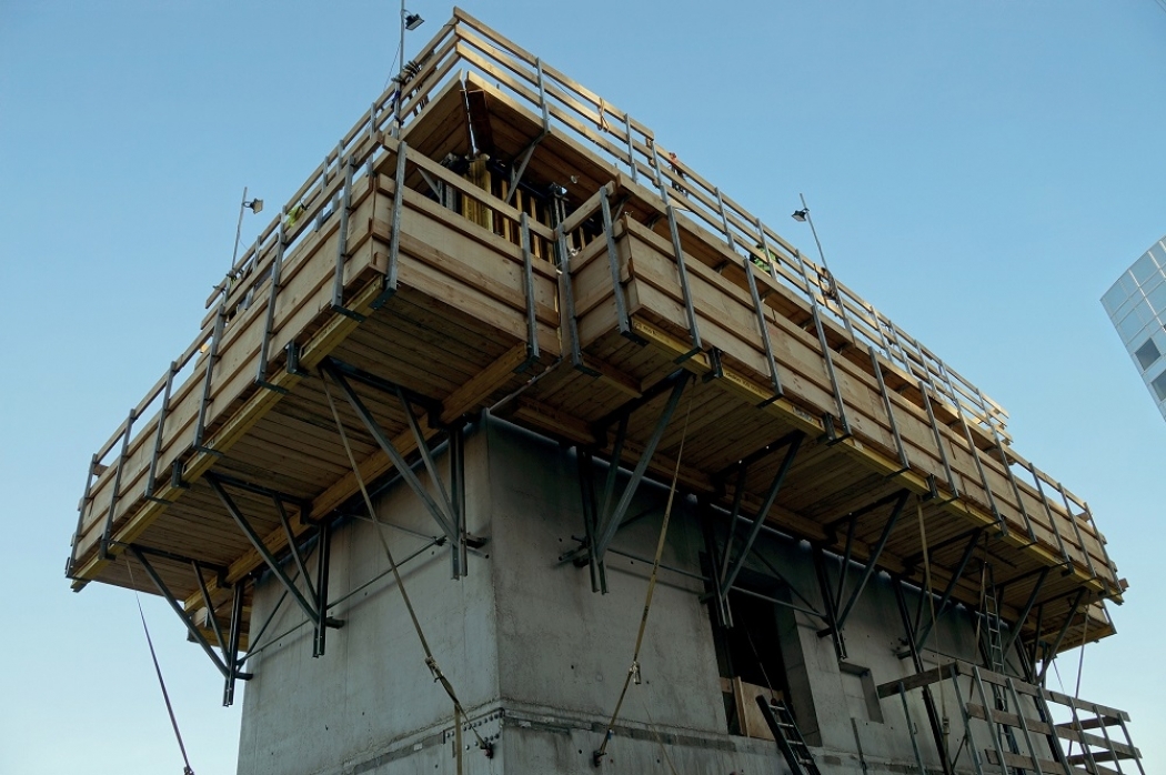 De betonnen kern van de nieuwbouwtorens wordt gerealiseerd met de MF240 klimbekisting en Top 50 en Framax bekistingsystemen van Doka Nederland.  De nieuwbouw van het Atrium, van de hand van MVSA Architects, omvat twee torens van 9 respectievelijk 16 verdiepingen hoog. De twee nieuwe torens sluiten in stijl aan op de bestaande bouw en zullen na voltooiing het bestaande gebouw inkapselen.
