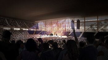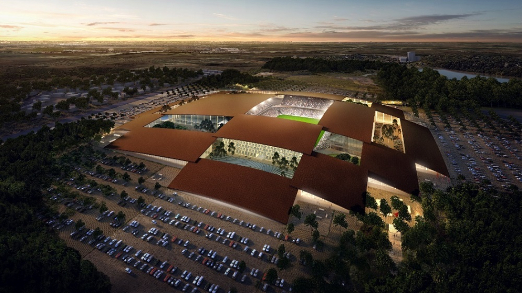 Hoewel BIG's plannen voor East Austin District nog steeds conceptueel zijn, heeft Austin Sports & Entertainment aangedrongen op het werven van de gelden voor het project.