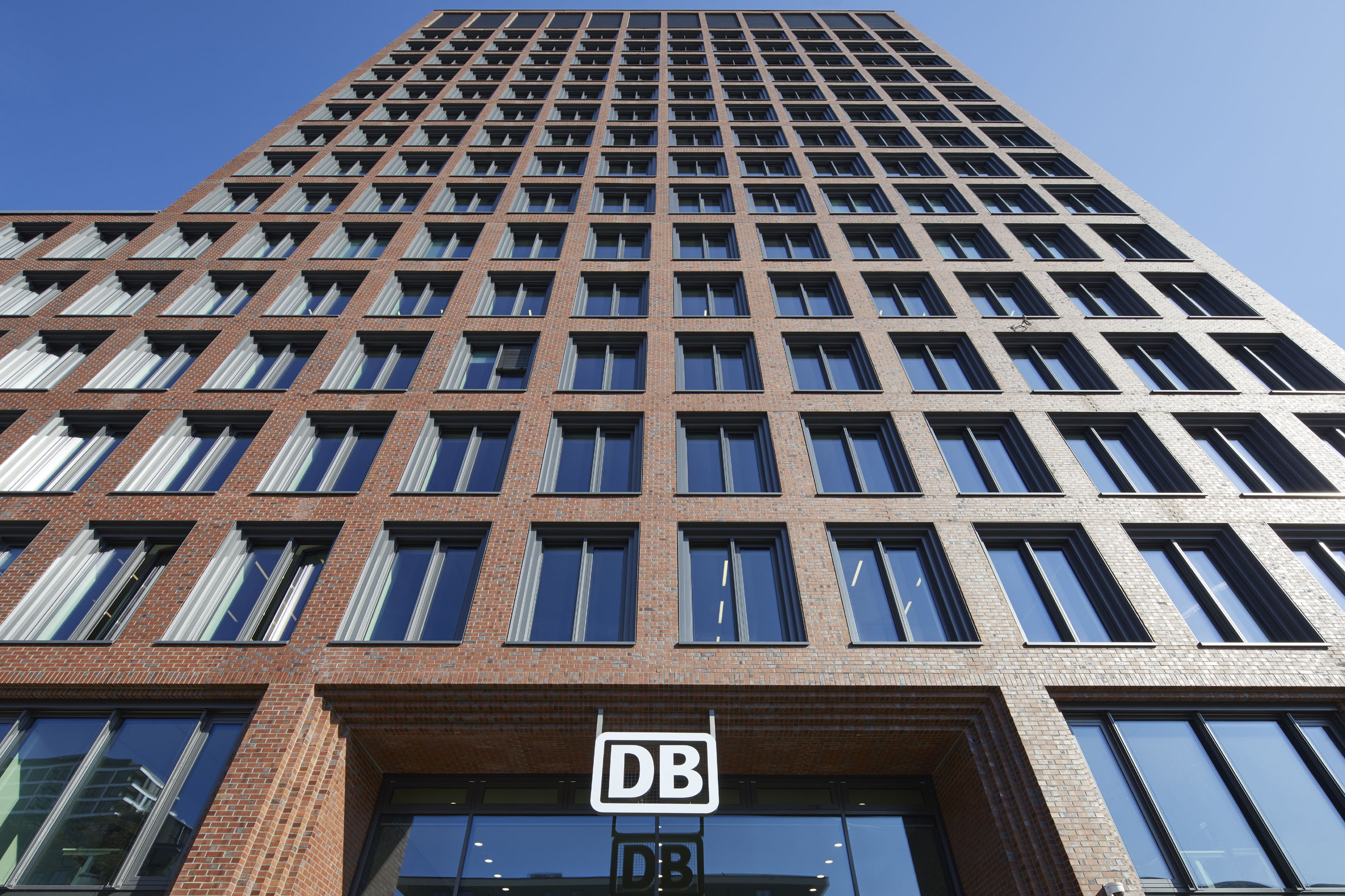 De gevel van de DB Tower werd voorzien van steenstrips in prefab betonelementen. Op een dubbelhoge plint heeft de 60 meter hoge toren 14 kantoorverdiepingen met een repeterend patroon van vensters gevat in ranke gemetselde penanten met diepe, geprofileerde neggen. Christian Schmidt: "Dat resulteert in een sterk raster, met in elk raamelement een verspringende profilering in donkergrijs aluminium."