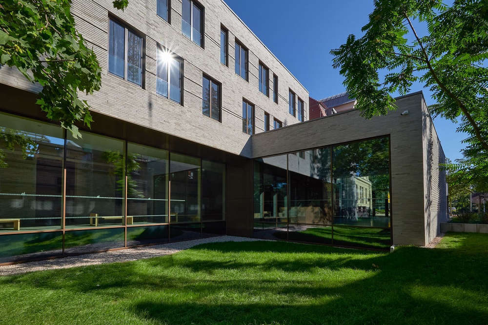Ook de reliëfs in het metselwerk van de nieuwbouw, uitgevoerd met de ranke, langgerekte 'Kristiansund HS' in moduulformaat, oriënteren zich op de bestaande architectuur. Vielain: "In aansluiting op de natuurstenen geveldelen en de kroonlijsten van de historische panden, ontwierpen we voor de nieuwe gevels allerhande reliëfs in het metselwerk, onder meer met terugliggend voegwerk en schuin uitkragende bakstenen. De baksteengevels voegen zich naar het historische ensemble, onderscheiden zich tegelijkertijd echter als autonome, eigentijdse architectuur.“ De metselwerkdetails werden uitgewerkt met behulp van gedetailleerde mock-ups.