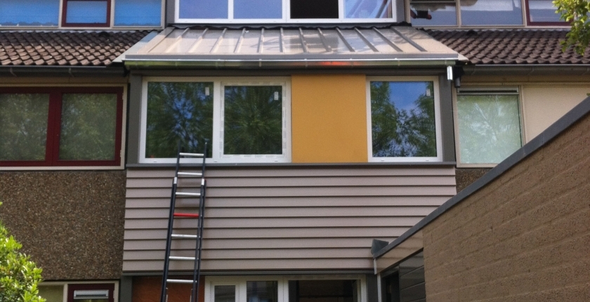 De proefwoning in Maarssen is zonder de hinder van sloopwerkzaamheden rondom voorzien van nieuwe gevelelementen en kreeg een nieuw dak met zonnepanelen erop.