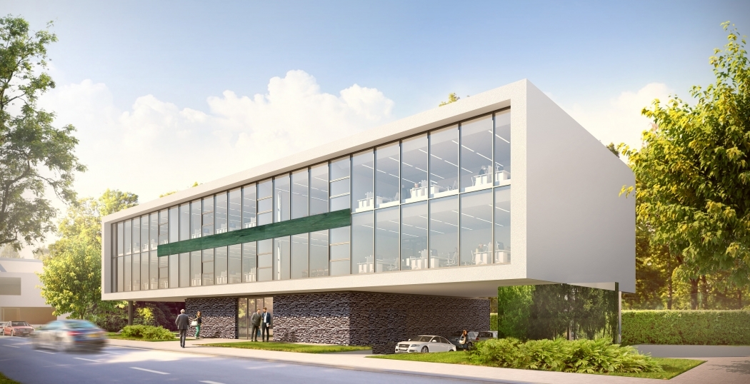 Bouw kantoorgebouw The Pavilion in groene omgeving
