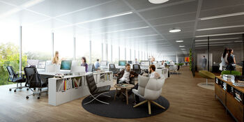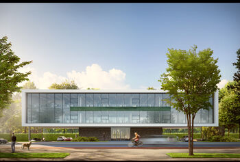 Impressie van The Pavilion, een nieuw kantoorgebouw aan de Fred. Roeskestraat in Amsterdam.