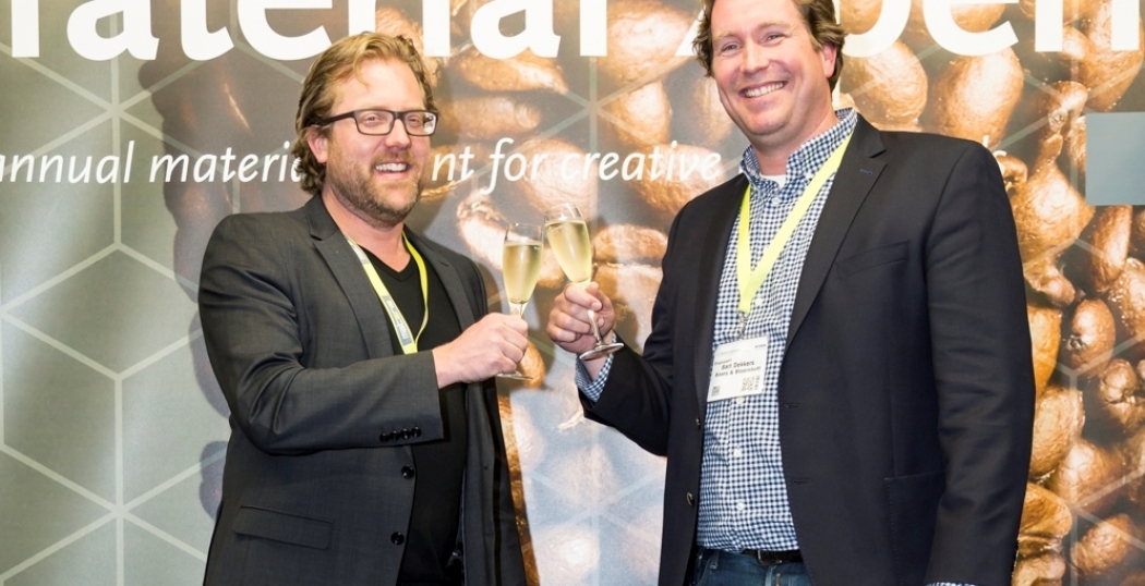 Het beklinken van de samenwerking tussen Broeinest en Materia. Links Jeroen van Oostveen (Materia), Bart Dekkers (Baars & Bloemhoff).