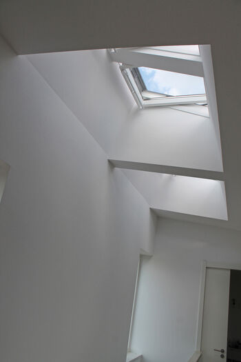Het huis is klaar en de opdrachtgevers wonen er naar volle tevredenheid. Het huis biedt de nodige mogelijkheden om verder te ontwikkelen. Er zijn al de nodige voorbereidingen getroffen om een dakterras aan te leggen en om de grote kamer op de eerste etage die nu als atelier dient, om te bouwen tot twee kamers. De railsen om zonweringsluiken in te hangen zijn al gemonteerd en de fietsenberging kan zo aan het huis worden gebouwd, die dan ook een gevel krijgt met dezelfde leien.