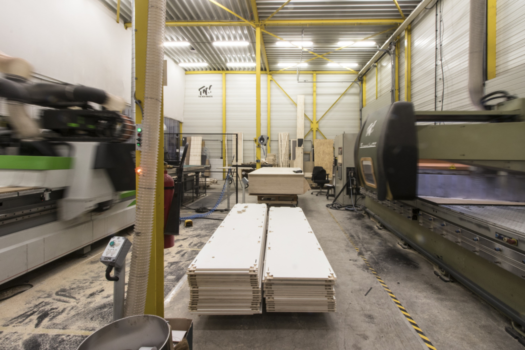 Die machines zijn het kloppend hart van de onderneming, zegt Stoutjesdijk: “Alles wat we bedenken wordt door een van onze state of the art computergestuurde (CNC)freesmachines gemaakt. Digitale precisie maakt slimme verbindingen mogelijk waardoor het bouwsysteem simpel is te demonteren en op oneindig veel manieren weer kan worden opgebouwd. Vorm, maat en inhoud zijn op de computer eenvoudig te wijzigen, waarna het nieuwe ontwerp direct naar de freesmachine kan worden gestuurd. Voor de machine maakt het helemaal niets uit of er honderd dezelfde platen gefreesd moeten worden of honderd unieke. Flexibiliteit is hét selling point.”