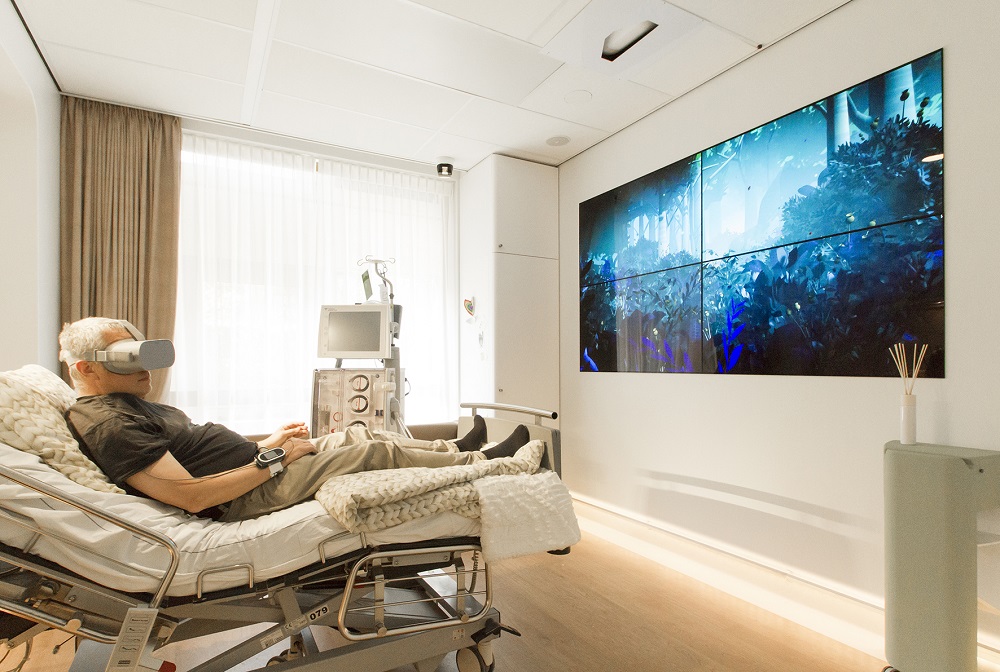 Robert Muijsers ontwikkelt vanuit Arbol AI digitale concepten en oplossingen die het leven van patiënt, cliënt en (zorg)professional makkelijker maken, veelal in relatie met de fysieke omgeving. Denk bijvoorbeeld aan een digital healing environment. Om concreet de kansen op dit vlak te laten zien, is in de afgelopen jaren mede door Muijsers onderzoek gedaan naar de werking van een variëteit aan digitale oplossingen voor zorgomgevingen. “We doen onderzoek naar technologische oplossingen die een toegevoegde waarde bieden aan het verbeteren van de gezondheid”, zegt Muijsers. “In de basis gaat het dan om het verbeteren van slaap en mobiliteit en het verminderen van stress en pijn.”