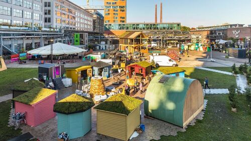 Duurzame woningen van biobased materialen tijdens de Dutch Design Week (2021, Strijp S, Eindhoven).