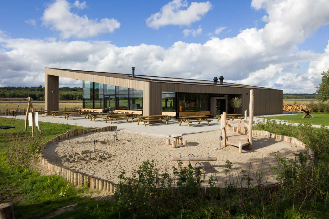 Het recent opgeleverde Café Restaurant Soesterdal is omringd door een natuurlijk speelbos en diverse speelplekken, met een weids uitzicht over de voormalige vliegbasis Soesterberg. Windgesteldheid, zon-oriëntatie en materiaalkeuze waren bepalend en gericht op het realiseren van comfort en energiebesparing en een gezond gebouw.