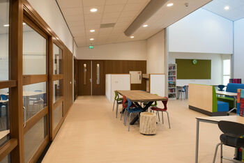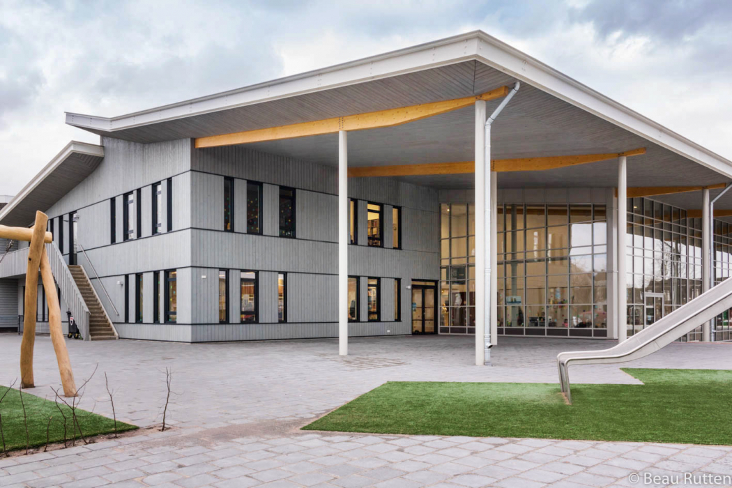 De school heeft verder een fraai uiterlijk met veel speelruimte, een opvallende overkapping met lichtinval via het dak en trappen aan de zijkanten zodat leerlingen op meerdere plekken naar binnen kunnen.