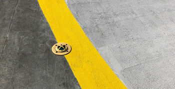 Op basis van de bouwplannen van UZ Leuven werd vervolgens de H-vorm en het kruis uitgemeten op het dakoppervlak. Daarna werd de markering voor de vijf in de luchtvaartnorm vastgelegde kleuren - geel, grijs, rood, wit en zwart - voorbereid. De volgorde van de aan te brengen kleurvakken werd bepaald, waarna de ondergrond werd ‘voorbereid’ met Triflex Metal Primer. Voor de antislipmarkering werd Triflex Cryl SC 237 gebruikt, dat in de verschillende opgelegde kleuren beschikbaar is.