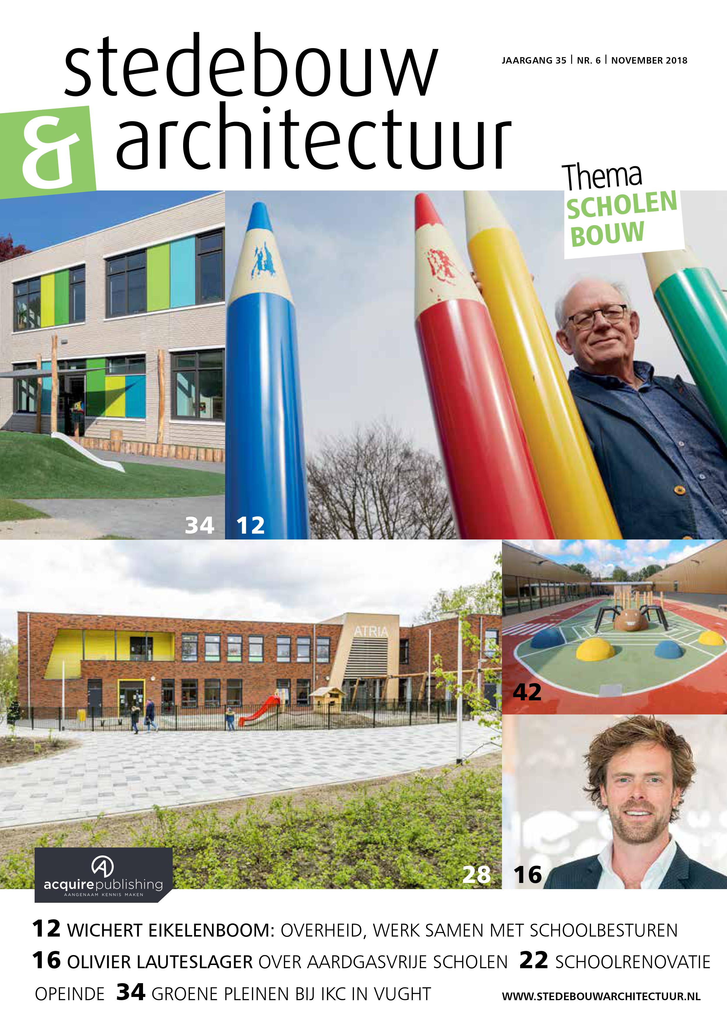 De zesde editie van Stedebouw & Architectuur in 2018 is verschenen. Het thema van dit nummer is Scholenbouw. Centraal staat de clustering van meerdere functies onder het schooldak en de verduurzaming, met focus op energiebesparing.