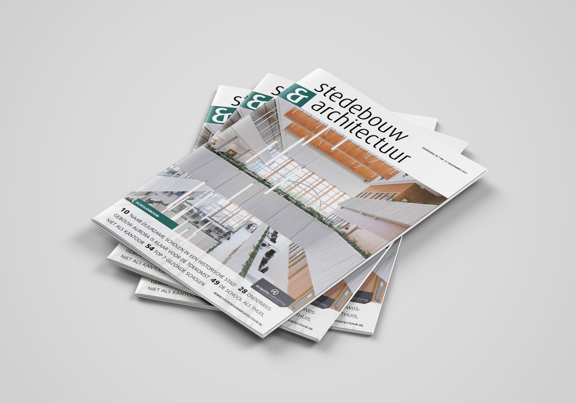 De vijfde editie van Stedebouw & Architectuur in 2021 is verschenen. Het thema van dit nummer is Scholenbouw. In deze editie werken wij samen met drie betrokken professionals om de immense opgave voor het onderwijsvastgoed onder de loep te nemen, waarbij gezondheid, duurzaamheid en het geluk van leerlingen én leerkrachten centraal staan.