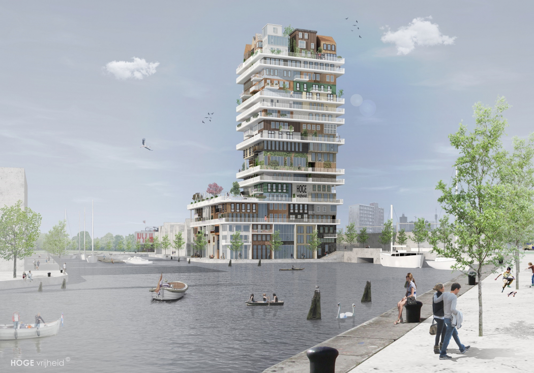 ''HOGE Vrijheid wordt een sensationeel gebouw, een gebouw waarin je ziet dat individuele vrijheid voorop staat. De diversiteit van deze hoogbouw weerspiegelt op deze manier de diversiteit van de hedendaagse samenleving'', aldus architect Martijn van der Hijden. Nu de gunning definitief is, wordt het ontwerp van circa honderd woningen verder uitgewerkt in overleg met kopers.