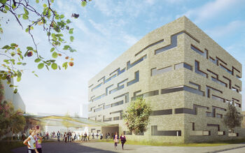 De verbinding tussen de pleinen en de promenade van het onderwijsgebouw met de binnenstad van Dendermonde zorgt ervoor dat de nieuwbouw naadloos aansluit bij het historisch centrum van de Belgische stad.