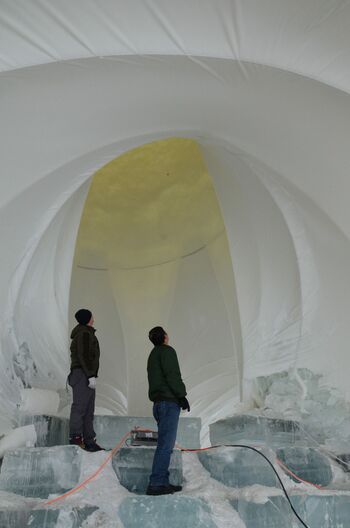 De onderzoeksgroep richt zijn pijlen op ijsconstructies en composietijs. Het ijs in de toren is verstevigd met cellulosevezels, waardoor het mogelijk is om met een beperkte schaaldikte toch de hoogte in te gaan met ijs. Het versterkte ijs is over een groot luchtkussen gespoten.