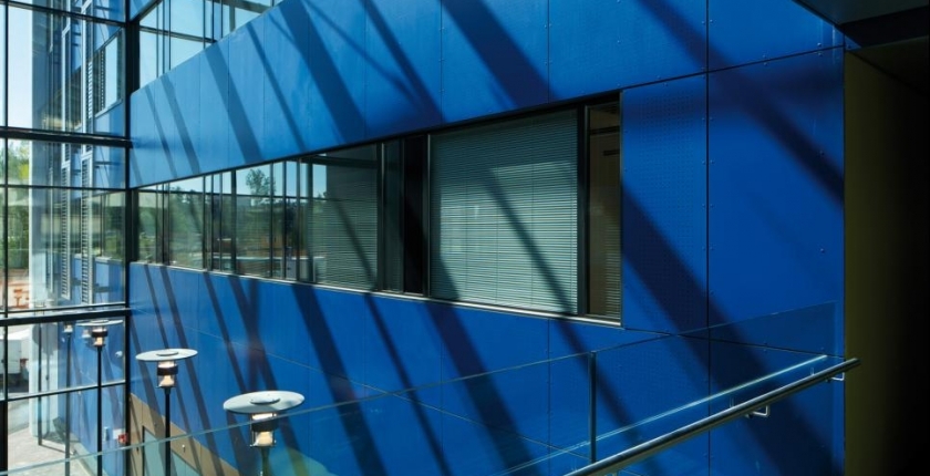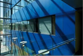 VIVIX-panelen bieden voorschrijvers ook een scala aan kleuren en patronen die zijn afgestemd op de hedendaagse architectuur en design – van verfijnde neutrale kleuren en opvallende accenten tot door de natuur geïnspireerde abstracte patronen en rijke houtreproducties. Voor Keilaranta waren de architecten op zoek naar opvallende, gedurfde kleuren en kozen ze voor panelen in de kleuren Spectrum Blue en Diamond Black.