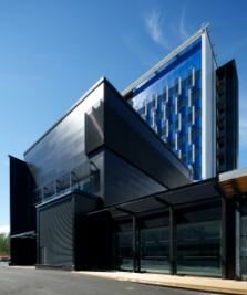 "We wilden een ontwerp creëren dat niet alleen esthetisch gezien aantrekkelijk zou zijn," vervolgt de architect, "maar dat ook een minimale impact zou hebben op het milieu in combinatie met maximale zichtbaarheid. We waren onder de indruk van de duurzaamheidskwalificaties van de Formica Group en de VIVIX-gevelproducten, dus voor ons was het een natuurlijke keuze."