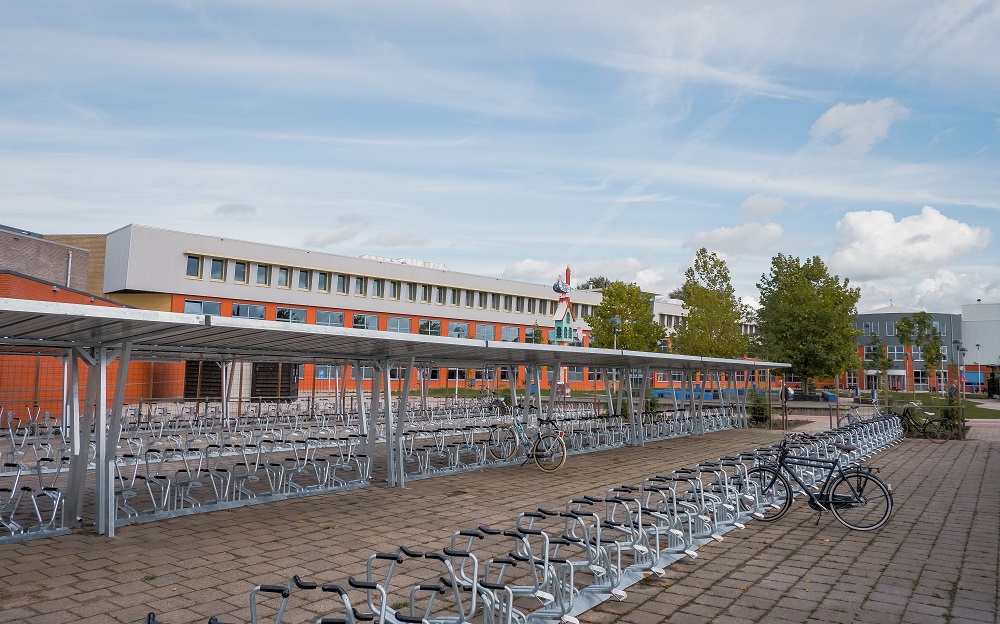 Het Woma fietsenrek bij Alfa College Hoogeveen.