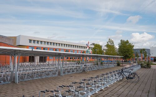 Verder heeft bij de renovatie van het schoolgebouw naar een toekomstbestendige onderwijsvoorziening circulariteit een grote rol gespeeld. Zo hebben de oude traptreden een nieuw leven als decoratie gekregen en zijn bestaande bomen verplaatst naar een nieuwe plek op het buitenterrein. Om deze reden heeft Klaver een biobased variant van de Wave overkapping te ontwikkelen als mogelijke aanvulling op de bestaande fietsenstallingen aangeboden. Er is tijdens de realisatie van de fietsenstalling rekening gehouden met deze mogelijke uitbreiding in de toekomst.