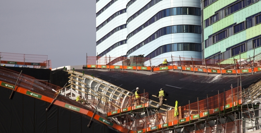 Bouwvakkers werken aan de vernieuwing van station Arnhem.
