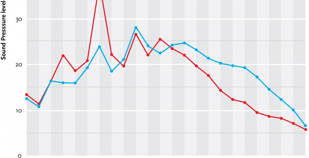 Grafiek geluidsniveau met en zonder antigeluid.
