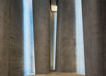 De voorgevel laat zonlicht door via spleten in het staal. Hierdoor ontstaan er lichtpilaren binnenin het gebouw in de vouwen van het beton, maar het licht valt ook op de tegenoverliggende muur. “Dit creëert bewegende lichtpatronen op de promenade, wellicht te zien als een vorm van passieve kinetische architectuur,” aldus Patterson.