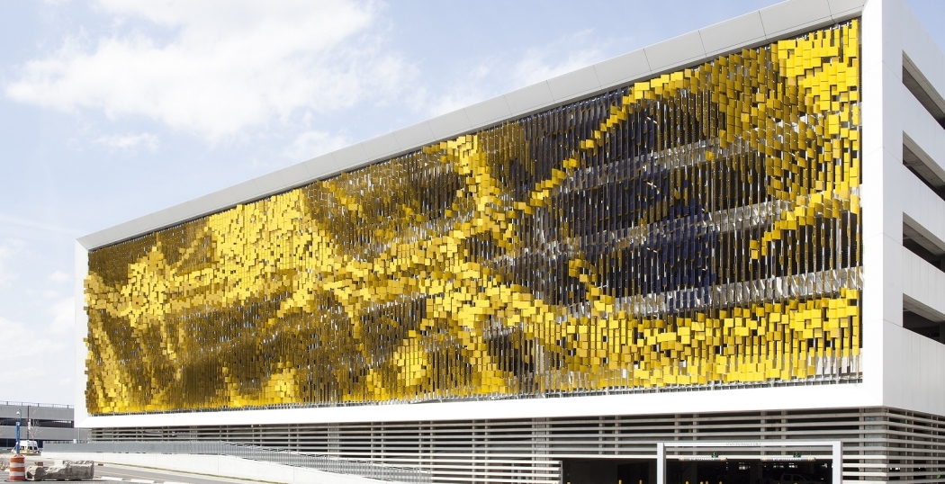 Om het idee van het parkeergebouw als ‘ondergewaardeerd infrastructureel element’ te doorbreken, besloot Rob Ley Studio de gevel van de Eskenazi Hospital parkeergarage in Indianapolis te transformeren in een ‘binair en synthetisch terrein’. Het gevolg: een gevel die meekleurt en -beweegt met bezoekers.