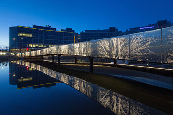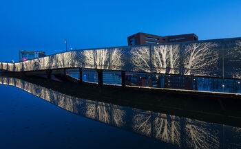 Door Industrielicht zijn geleverd LED-armaturen van het fabricaat ACDC die de geperforeerde wanden van roestvast staal van binnenuit uitlichten. Hierdoor wordt het patroon van boomtakken zichtbaar in de donkere uren. Daarnaast zijn er vandaalbestendige LED-inbouwarmaturen van het fabricaat SÉCURLITE geleverd. Deze zorgen voor de functionele verlichting op het brugdek. Alle armaturen zijn dimbaar geleverd conform de richtlijnen van de gemeente Haarlemmermeer.