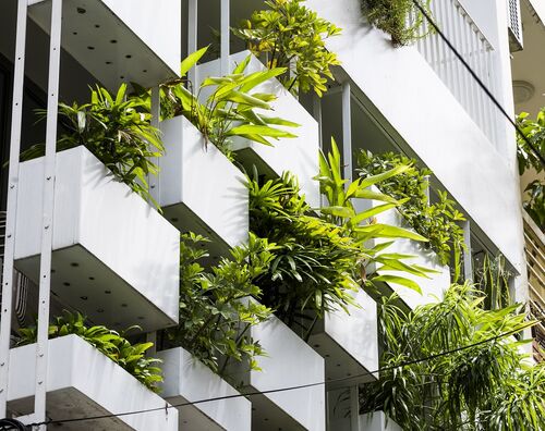 Desondanks zijn we er nog lang niet, weet ook Baehner, en dat brengt ons terug bij de noodzaak voor meer kennis. “Je hebt altijd koplopers die het niet gek vinden om weet ik hoeveel euro’s hierin te investeren, zij het omdat ze het zelf willen of omdat een architect hen motiveert.” Toch hoef je niet per se iets bijzonders te doen, zegt ze. Ze verwijst hierbij naar een klein project in Botanical Buildings in Vietnam, waar planten gewoon in de plantenbakken staan. “Dit toont dat je niet meteen een enorme groene gevel hoeft te maken om indruk te maken. Met wat maatwerkbakjes die je naast elkaar ophangt kun je al een groot verschil maken.”