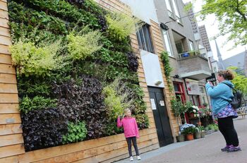 “Nu de planten volwassen zijn, zijn er dagelijks mensen die voelen of de planten wel echt zijn. Ook worden er volop selfies en foto’s gemaakt met de wand als achtergrond,” aldus Leon Jacobs, van Rodenburg Tuinen uit Woerden. Medewerkers van Rodenburg Tuinen monteerden het zogenoemde LivePanel systeem van groenspecialist Mobilane met een oppervlakte van 18 m2 in de gerenoveerde Rijnstraat.