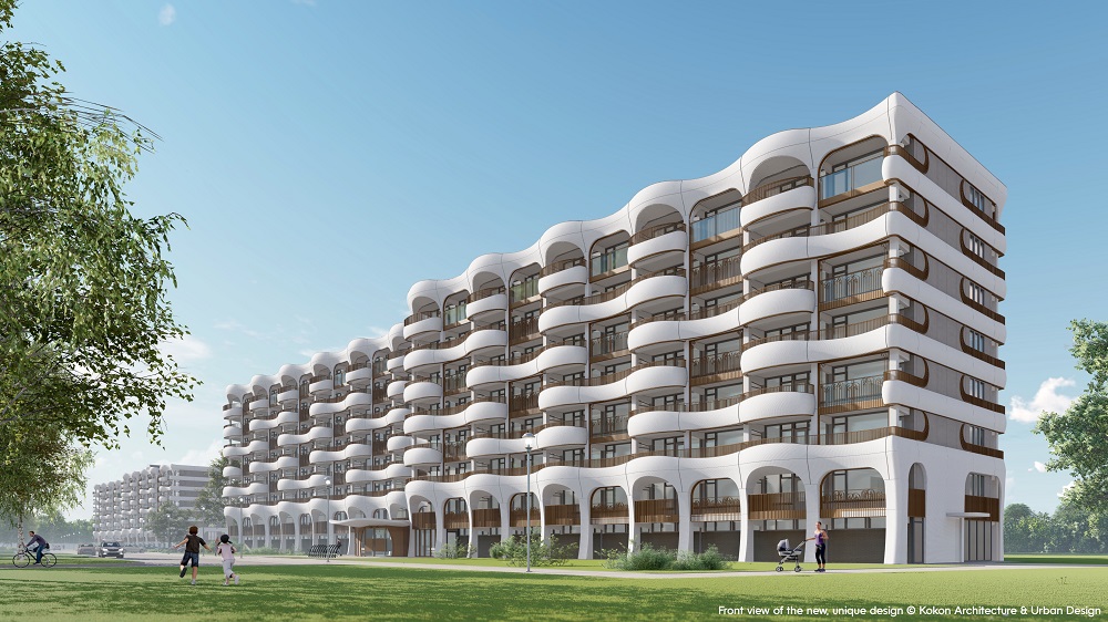 Bij het printen van de balkons zijn geen mallen nodig, waardoor de vormvrijheid groot is. Daar heeft de architect gebruik van gemaakt. Ron van Leeuwen, directeur van Kokon: “We gaan van uiterst monotoon, grootschalig en rechthoekig naar levendig en gevarieerd met veel ronde vormen in een menselijke maat. Onze ambitie is om ondanks de beperkingen van de bestaande gebouwen toch een unieke architectuur te creëren.”
