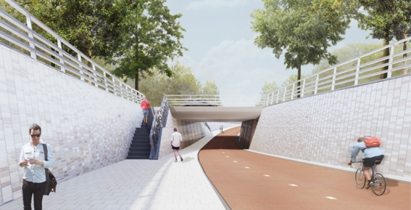 Langzaamverkeerroute met viaduct, onderdeel van de nieuwe ontsluiting van het BSC.