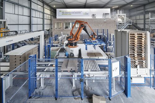 Hennepkalk blokken voor biobased wanden. De fabriek van Isohemp in België kan jaarlijks vijf miljoen van deze blokken leveren.