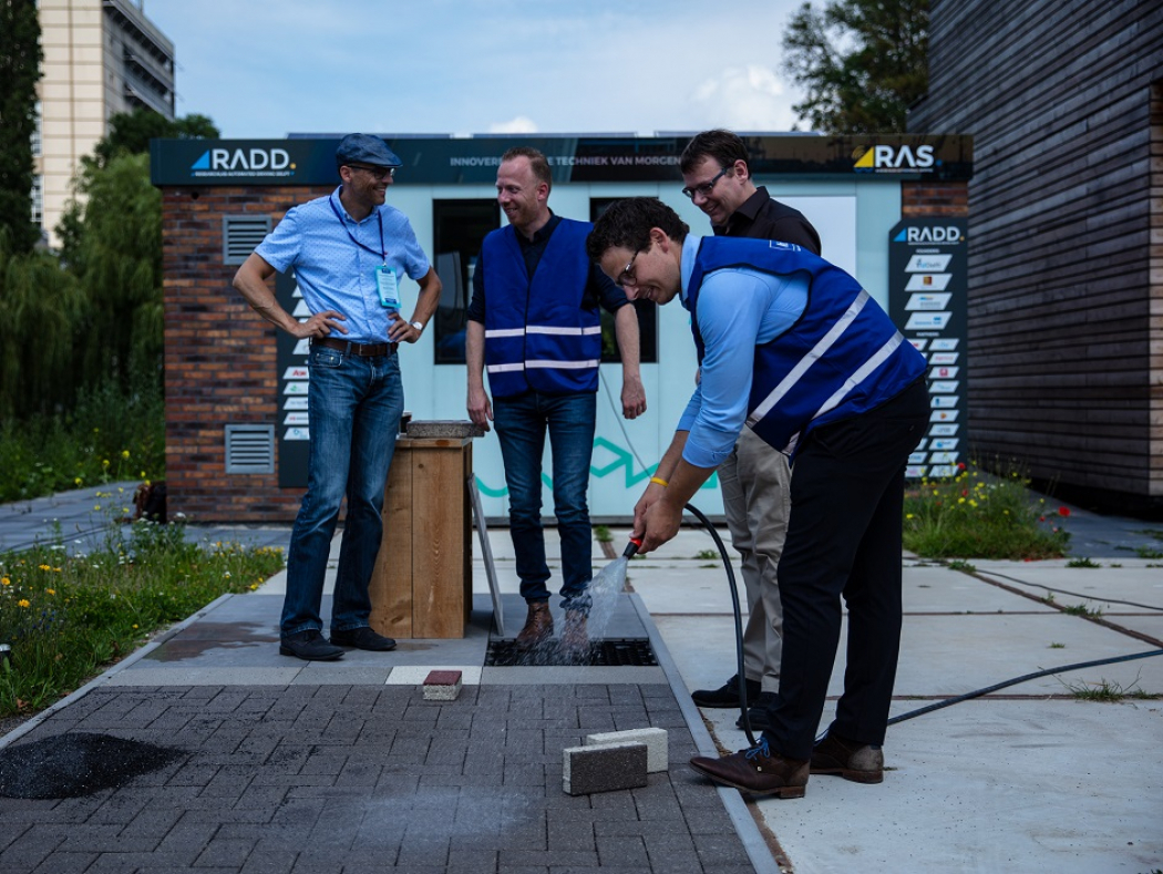 Rob Alards van Tile System X is een innovatieve ondernemer. “In Delft testen we onze keramische klinkers. Ze kunnen 5 liter water per vierkante meter absorberen en geven het water vertraagd af aan de bodem. Met warm weer verdampt het water, waardoor we bovendien de hittestress verminderen. Waarom het voor ons zo belangrijk is om een realistische testomgeving te hebben, is omdat er veel vragen komen van bijvoorbeeld gemeenten over het onderhoud op lange termijn. Hier laten we zien dat deze klinkers een volwaardig en beter alternatief zijn.”En zo zijn er veel meer voorbeelden die inmiddels ook hun weg naar de markt vinden. Zoals Rain(a)Way. De gemeente Heemskerk gebruikt Rain(a)Way Flood Bold-tegels als scheiding tussen de fiets- en voetpaden.