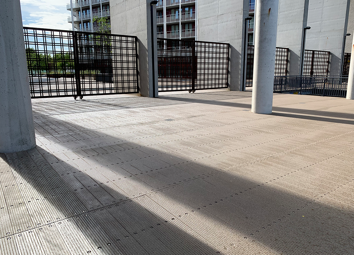 BetonRestore ging aan de slag met de producten van Triflex. Er is gekozen om het wandeldek in zijn geheel te voorzien van een duurzame en slijtvaste vloerafwerking. Het membraan biedt een oplossing die verder reikt dan alleen het aanbrengen van een coating. Door de zorgvuldige opbouw van het systeem zijn slijtvastheid en antislip gewaarborgd. Het systeem kan zowel op nieuwe als bestaande dekken gebruikt worden en kan op verschillende ondergronden worden aangebracht. Doordat het materiaal wordt ingestrooid maakt het slippen en gladheid vrijwel onmogelijk. Door de snelle uitharding van de gebruikte materialen was er minimaal overlast voor gebruikers van het wandeldek.