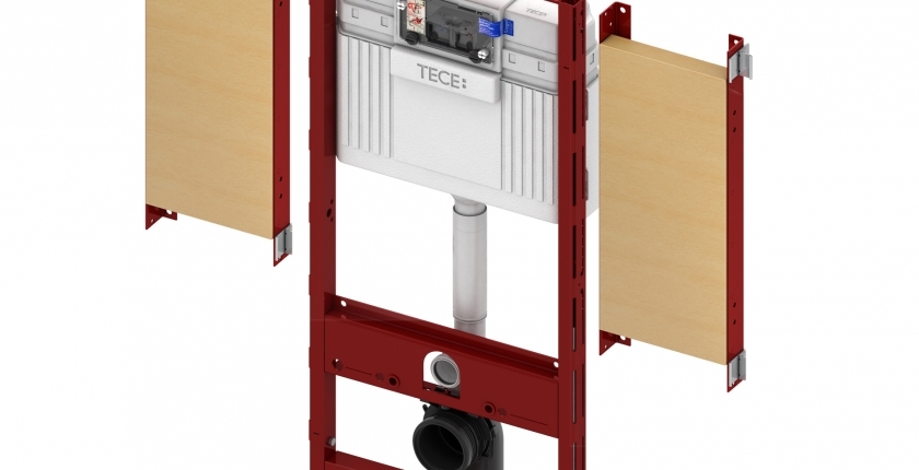 Wenst u meer functies, zoals afstandsbediening, dan biedt TECE het speciale TECEgeronto inbouwreservoir. Dit inbouwreservoir is ook universeel inzetbaar. Het spoelen kan draadloos, via de bedieningsknop op de steunarmen of via de wc-bedieningsplaat plaatsvinden. Dankzij de voorgemonteerde loze leidingen kunnen de kabels voor bediening via de steunarmen, eenvoudig worden aangesloten. Door de vaste positionering van de montageplaten aan de zijkanten, is de juiste montage van de steunarmen volgens de normeringen gewaarborgd. Onjuiste montagehoogten en montageafstanden zijn daardoor uitgesloten. De verhoogde aansluiting van 48 cm t.b.v. het toilet is standaard in de traverse voorzien.