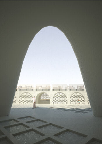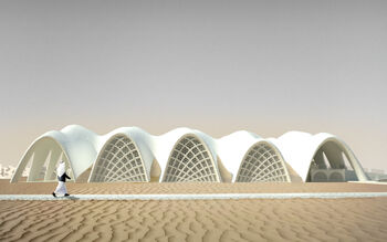 Jonge architect ontwerpt stad in woestijn met zeezout