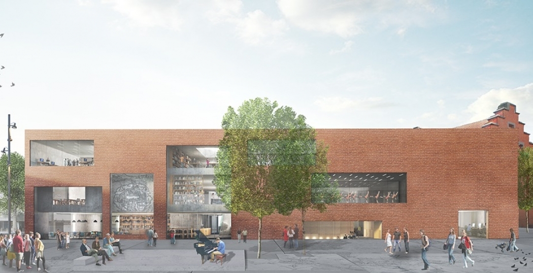 Het ontwerp van de nieuwe stadsbibliotheek in Aalst door KAAN Architecten. © EdiT, KAAN Architecten