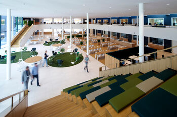 Het nieuwe interieurontwerp is gebaseerd op een niet plaatsgebonden en flexibel werkconcept. Communicatietrappen en vides verbeteren de onderlinge relaties tussen de afdelingen. Je kunt werken op de plek die het best past bij wat je moet doen dankzij verschillende zones. Zo zijn er dynamische zones waar mensen binnenkomen met ontmoetingsplekken, maar ook rustige zones met concentratiewerkplekken. Om deze verschillende manieren van werken naast elkaar mogelijk te maken is veel aandacht besteed aan de akoestiek.