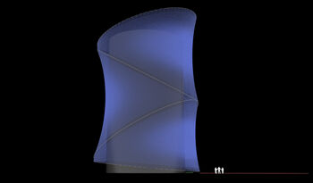 “Het resultaat is een dynamisch, altijd veranderend oppervlak van licht en schaduw, geanimeerd door de wind, waardoor het gebouw verandert in een baken van een nieuw, dynamisch energieregime,” aldus de architect. De binnenste gevel wordt gekenmerkt door verschillende kleuren blauw. De buitenste gevel bestaat uit stalen, elliptische ringen om het gebouw heen die door een kabelnetwerk bij elkaar worden gehouden.