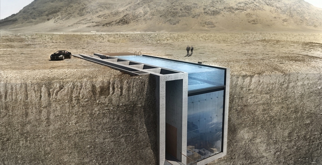 Een baanbrekend project, volgens architect OPA (Open Platform for Architecture), dat zich letterlijk in de grond vestigt. De Casa Brutale bestaat uit een rechthoekige betonnen structuur van in totaal 180m2 die vanaf het oppervlak nauwelijks zichtbaar is, met uitzondering van het zwembad. “Een kameleontische woonruimte die de bewoner bedient en omgeving respecteert,” aldus de architect.